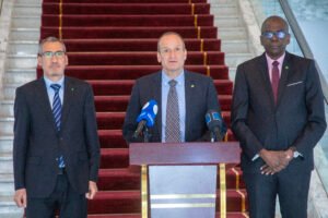 وبعد اللقاء أدلى رئيس وفد صندوق النقد الدولي السيد فيليكس فيشر ، بتصريح حول طبيعة وأهداف اللقاء الذي جمعهم بفخامة رئيس الجمهورية السيد محمد ولد الشيخ الغزواني.