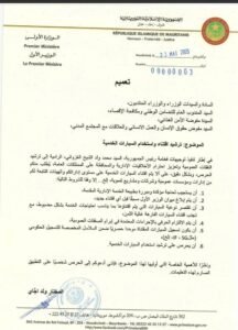 وأكدت الوزارة الأولى أن هذا التعميم جاء تطبيقا لتوجيهات الرئيس محمد ولد الغزواني