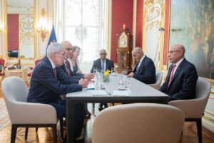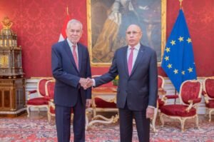 التقى رئيس الجمهورية السيد محمد ولد الشيخ الغزواني، مساء اليوم، في القصر الرئاسي بالعاصمة النمساوية فيينا، مع الرئيس النمساوي ألكسندر فان دير بيلين.