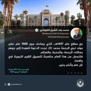 رئيس الجمهورية محمد ولد الشيخ الغزواني على منصة X يهني الامة الاسلاميةبجلول رأس السنة الهجرية ويدعو الي العودة الي جوهر الاسلام :