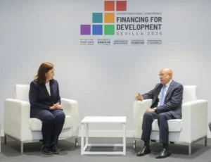 عقد الرئيس محمد ولد الشيخ الغزواني، صباح اليوم الثلاثاء 1 يوليو 2025، على هامش اليوم الثاني من أشغال المؤتمر الدولي الرابع لتمويل التنمية المنعقد بمدينة إشبيلية الإسبانية، لقاءً مع رئيسة الحكومة التونسية، سارة الزعفراني الزنزري.