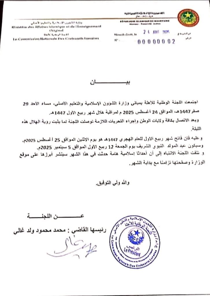 اللجنة الوطنية للأهلة: يوم الاثنين 25 أغسطس 2025 هو فاتح شهر ربيع الأول للعام 1447هـ