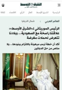 وحول خطة الرئيس الأميركي دونالد ترمب للسلام في قطاع غزة، قال الرئيس الموريتاني: «نثمِّن هذه الخطة التي تهدف إلى وقف إطلاق النار، وإيقاف آلة القتل والتدمير. إنها تمثل تطوراً إيجابياً مُقدَّراً».