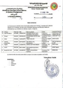 – مديرا للتربية في ولاية داخلت نواذيبو: سيدي أحمد فال بو حمادي،