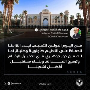 ”في اليوم الدولي للتعليم، نجدد التزامنا للحفاظ على التعليم كأولوية وطنية، لما له من دور جوهري في تحقيق الرفاه، وترسيخ العدالة، وبناء مستقبل أفضل لشعبنا”.
