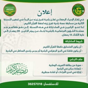بلدية وتفرق زينة بدأ الترشح النسخة الثانية من لمسابقة عمدة بلدية تفرغ زينه لحفظ القرآن الكريم