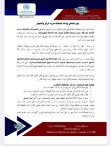 وأكد البيان أن حرية الرأي والتعبير حق أصيل تكفله المادة (19) من الإعلان العالمي لحقوق الإنسان الصادر عن الأمم المتحدة، كما يحميه العهد الدولي الخاص بالحقوق المدنية والسياسية، الذي يضمن حق الأفراد في نقد الأداء العام دون خوف أو ترهيب، ويعد من أهم المواثيق الدولية الملزمة في ما يتعلق بحماية الحريات الأساسية، وفي مقدمتها حرية الصحافة.