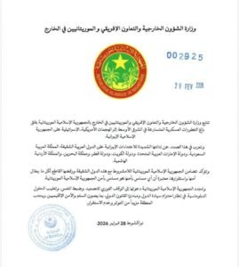 وأعربت موريتانيا عن تضامنها الكامل مع دولة الإمارات العربية المتحدة، مجددة رفضها لكافة أشكال الاعتداء على المقار الدبلوماسية، وداعية إلى ضرورة ضمان حمايتها وتأمينها وفق الالتزامات الدولية.