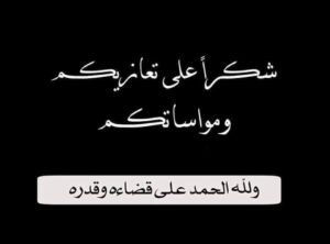 لقد كان لتعازيكم الصادقة، سواء بالحضور أو الاتصال أو عبر وسائل التواصل، أطيب الأثر في نفوسنا، وخففت عنا مصابنا الجلل، فجزاكم الله عنا خير الجزاء، ولا أراكم مكروهاً في عزيز لديكم.