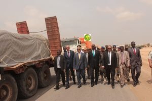 وقد أشرف على انطلاقة القافلة وزير الداخلية واللامركزية الدكتور محمد سالم ولد مرزوك مرفوقا بمفوض حقوق الإنسان والعمل الإنساني والعلاقات مع المجتمع المدني السيد حسنه ولد بوخريص والمفوض المساعد للأمن الغذائي السيد محمد ولد محمد العيد ولد خيار ورئيس الاتحاد الوطني لأرباب العمل الموريتانيين السيد محمد زين العابدين ولد الشيخ أحمد .
