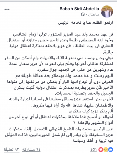 على الرئيس محمد ولد الشيخ الغزواني التعجيل بإلغاء مذكرات عزيز السخيفة، وأن يبادر إلى لمّ شمل الموريتانيين، فذلك المؤمَّل فيه تربية و خُلقا وسياسة