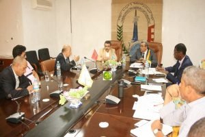 عقد رئيس غرفة التجارة والصناعة والزراعة الموريتانية، السيد أحمد باب ولد أعليه، اليوم الخميس بمباني الغرفة في نواكشوط، جلسة عمل مع وفد مغربي من غرفة التجارة والصناعة والخدمات لجهات الرباط وسلا والقنيطرة، برئاسة السيد عبدالله عباد، رئيس الغرفة.