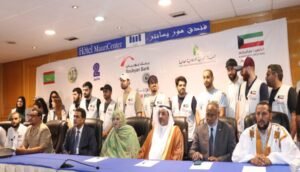 ورحب بالوفد الخيري من دولة الكويت الشقيقة، شاكرا كل الخيرين من دولة الكويت الذين دأبوا على بذلهم المشهود لدعم الشعب الموريتاني، وكذا بنك “بوبيان” والهيئة الخيرية الإسلامية ومبادرة “دينارين” على اللفتة الكريمة والعمل الجبار الذي سيتوج هذا الأسبوع بحصيلة عمل ذات منفعة عالية للمحتاجين في البلد.