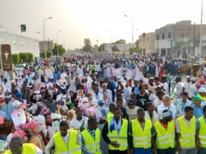 و انطلقت المسيرة  من “ملتقى مستشفى صباح” بالعاصمة نواكشوط ، باتجاه منطقة المطار القديم , وشهدت مشاركة أعداد غفيرة من أنصار الاحزاب المنظمة للمسيرة , والذين نددوا بما أسموه تزوير الانتخابات مطالبين باعادتها.