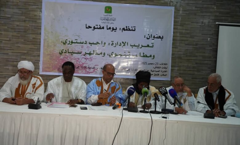 إيجاز صحفي نظَّمت الحملة الشعبية للتمكين للغة العربية وتطوير لغاتنا الوطنية، اليوم الثلاثاء 23 ديسمبر 2025، يوما مفتوحا تحت شعار: «تعريب الإدارة: واجب دستوري، ومطلب تنموي، ومظهر سيادي»، وذلك في إطار أنشطتها المخلدة لشهر العربية. ويهدف هذا اليوم إلى تنبيه الجهات المعنية إلى استمرار تعطيل المادة السادسة من الدستور في عدد كبير من الوزارات والإدارات العمومية والمؤسسات الخصوصية. كما يهدف…