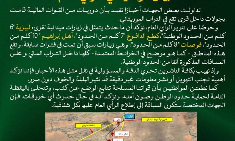 الجيش الوطني يؤكد سلامة الحدود وينفي أي توغل لقوات مالي داخل موريتانيا